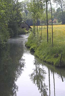 Le Loir au niveau du lavoir de La Védière, proche du pont Saint-Hilaire.